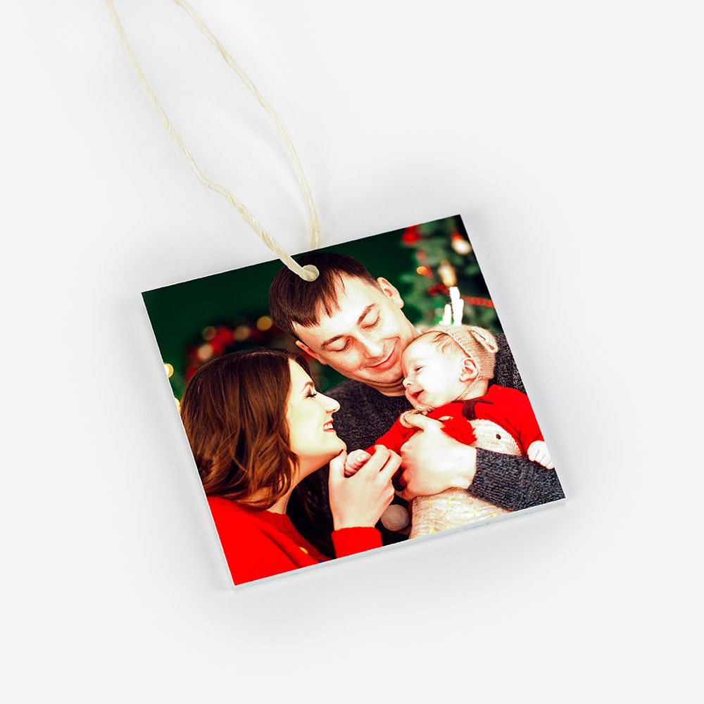 Fabricado en acrílico, este adorno es perfecto para decorar tu árbol de Navidad. La personalización se realiza mediante impresión UV Inkjet Fujifilm, aplicada solo en uno de los lados.