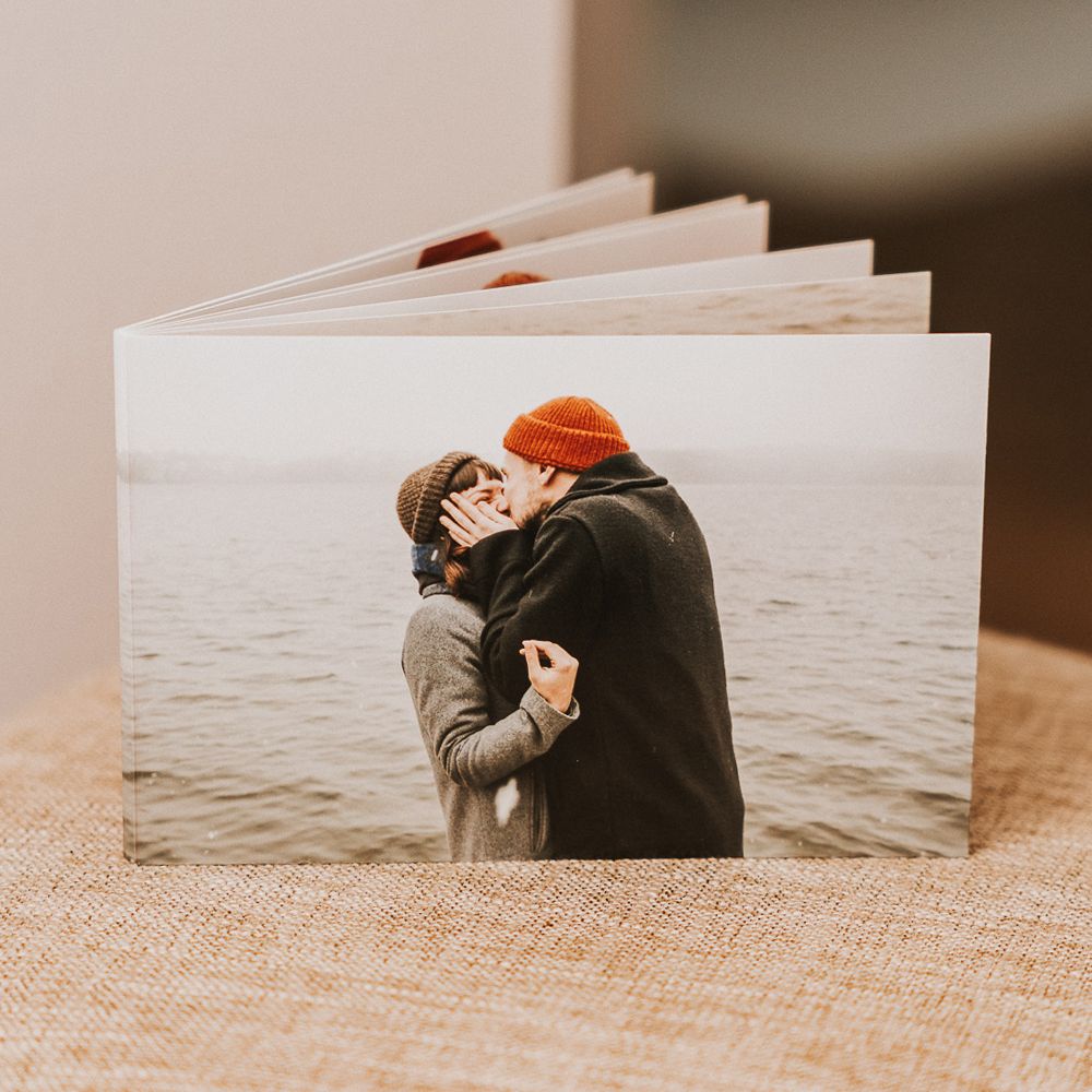 El Álbum de Fotos Booklet 15x10cm está disponible en páginas ligeras y flexibles de 400 g, ideales para quienes prefieren un álbum más manejable.