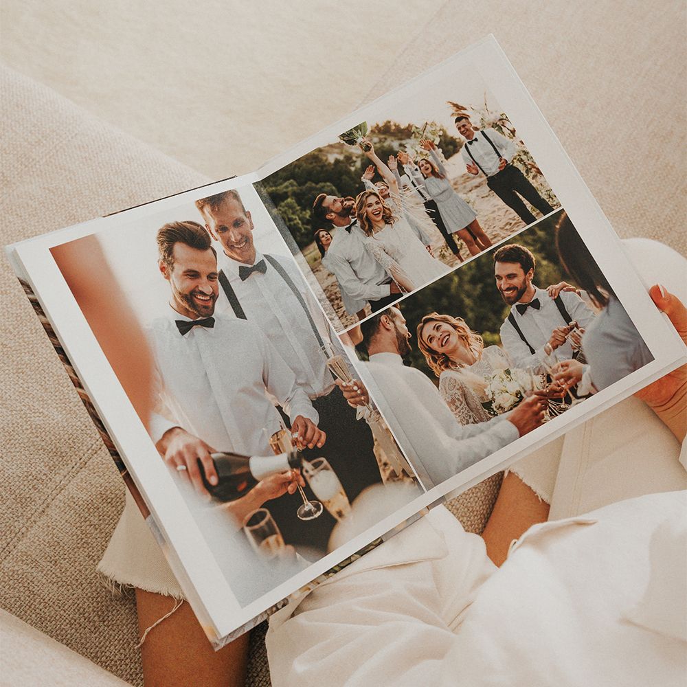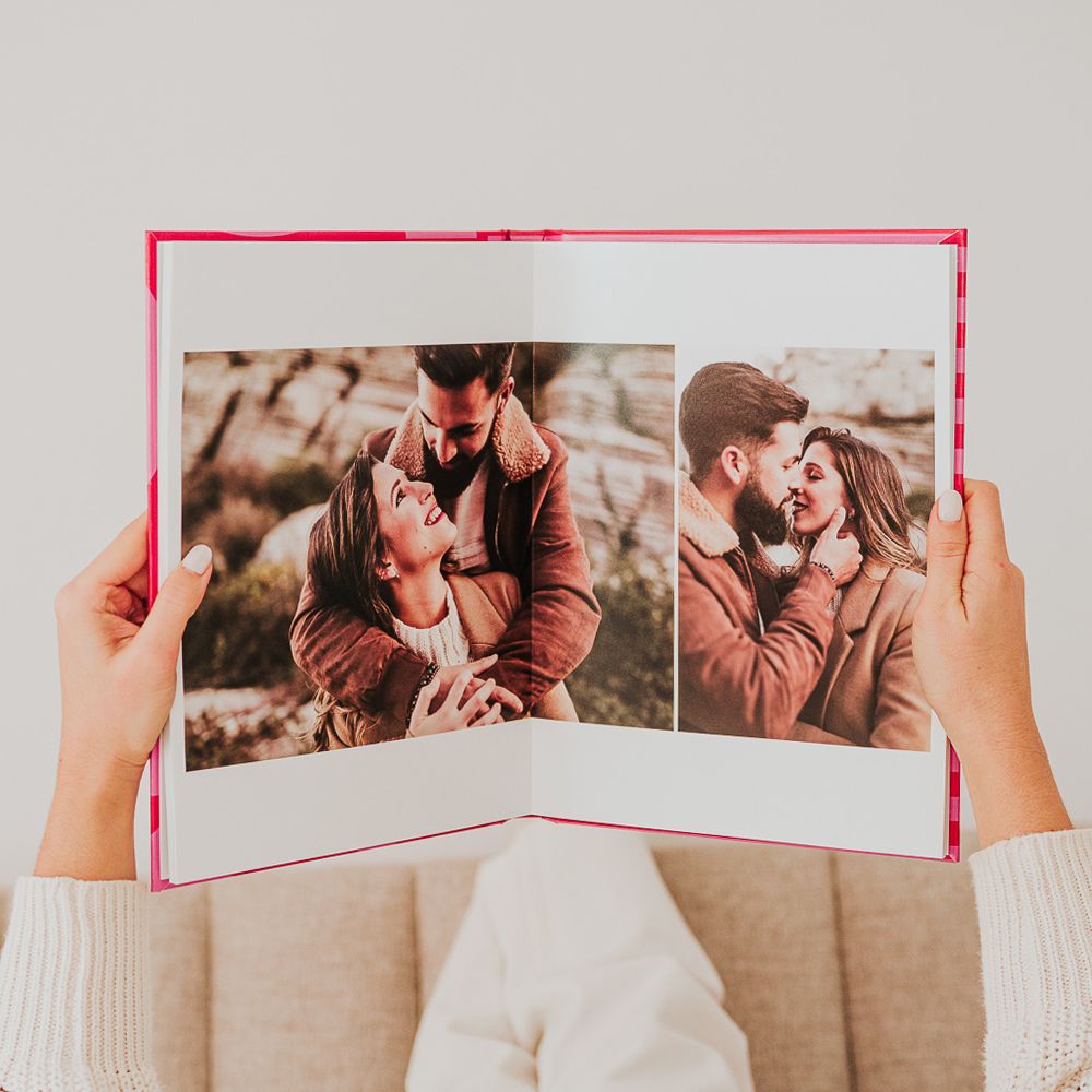 Los Álbumes de Fotos Dreambooks cuentan con una apertura panorámica, lo que permite colocar una foto destacada ocupando ambas páginas. Esta característica garantiza una visualización perfecta de tus fotografías, sin cortes ni partes ocultas.