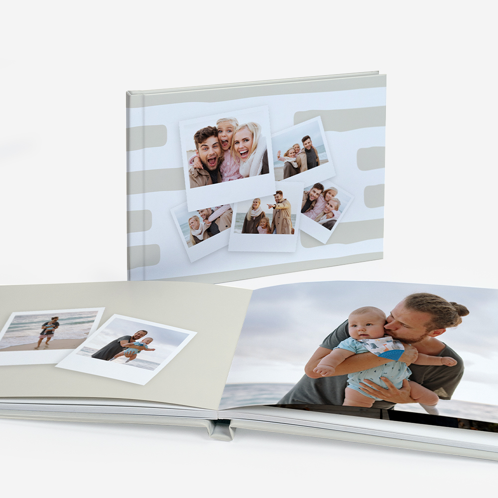 Los 脕lbumes de Fotos Dreambooks presentan una apertura panor谩mica, permitiendo colocar una foto destacada que ocupe dos p谩ginas. De esta manera, disfrutar谩s de una visualizaci贸n perfecta de tus fotos, sin cortes ni partes ocultas.