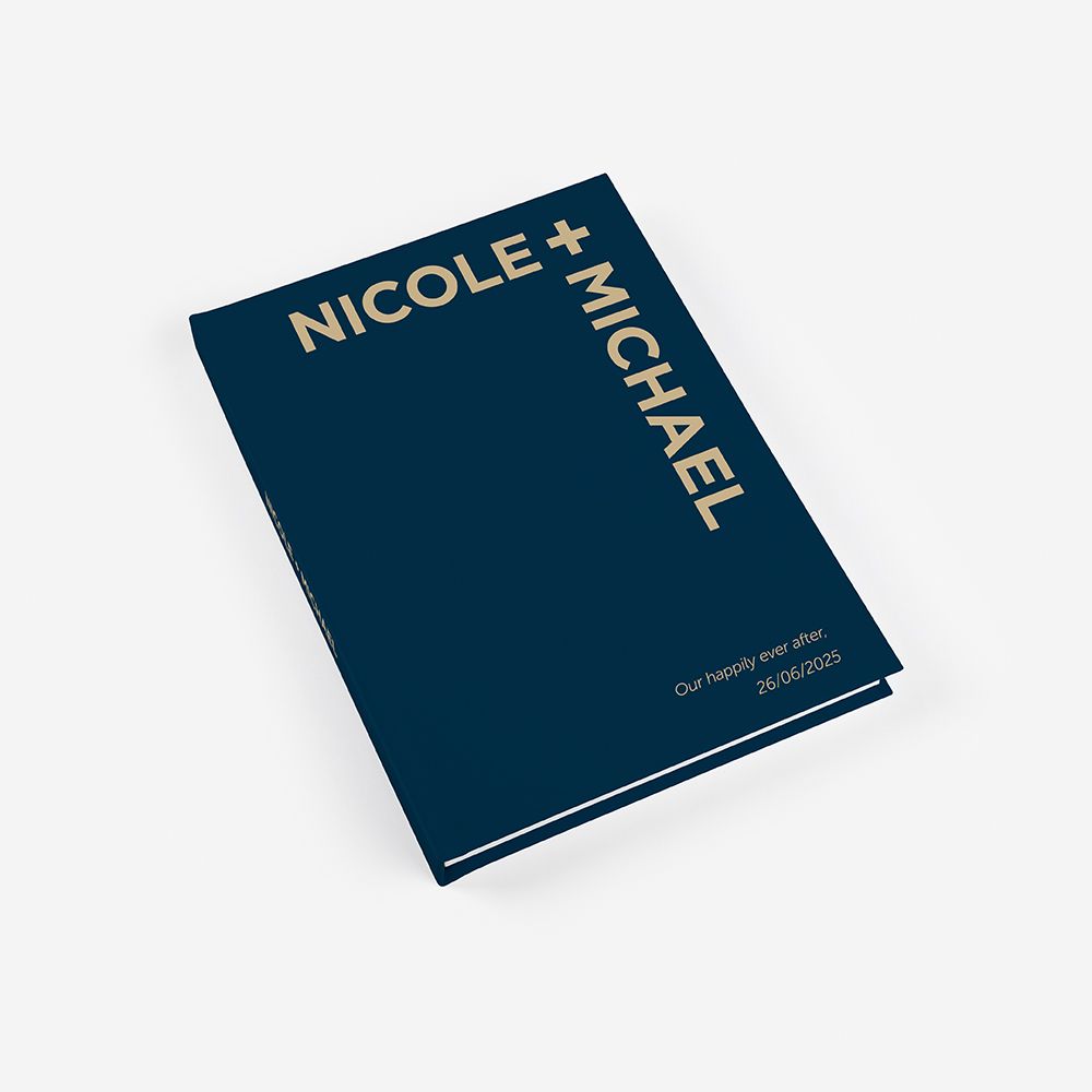 Con su cubierta azul profundo y tipografía minimalista, este álbum refleja la fuerza y serenidad de un amor duradero. Personalizable con vuestros nombres y fecha, para conservar vuestro “felices para siempre”.