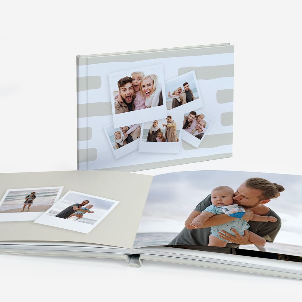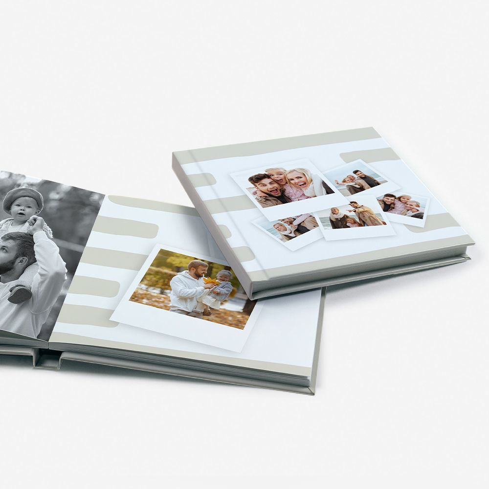 La tapa rígida de cartón duro proporciona una protección extra y un acabado elegante para tu álbum.