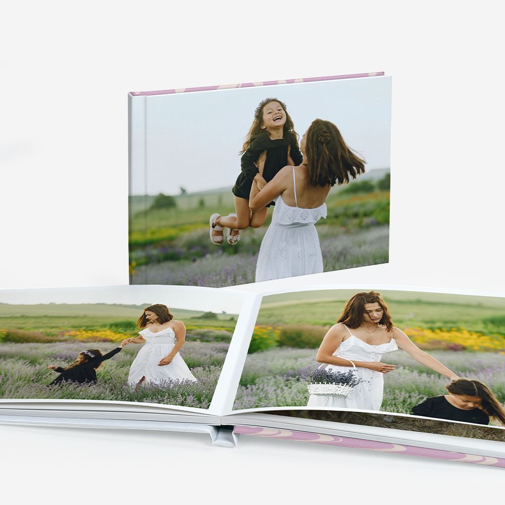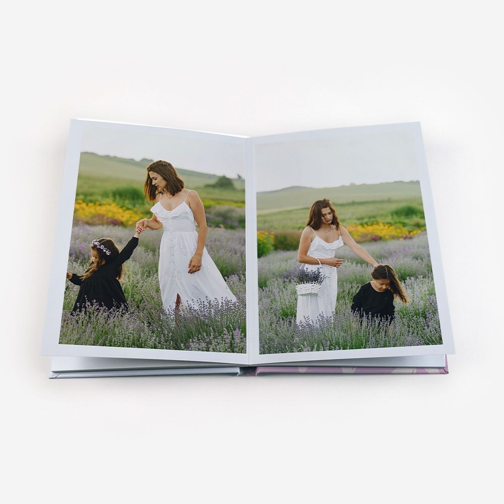 Los Álbumes de Fotos Dreambooks presentan una apertura panorámica, permitiendo colocar una foto destacada que ocupe dos páginas. De esta manera, disfrutarás de una visualización perfecta de tus fotos, sin cortes ni partes ocultas.