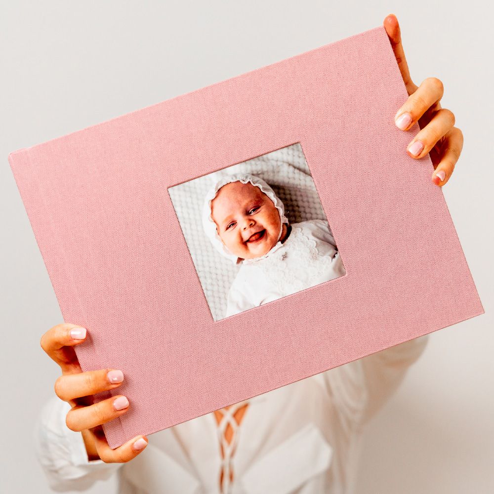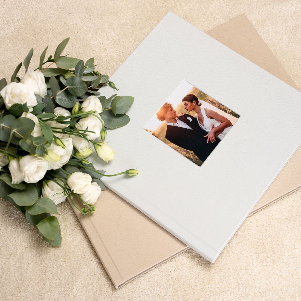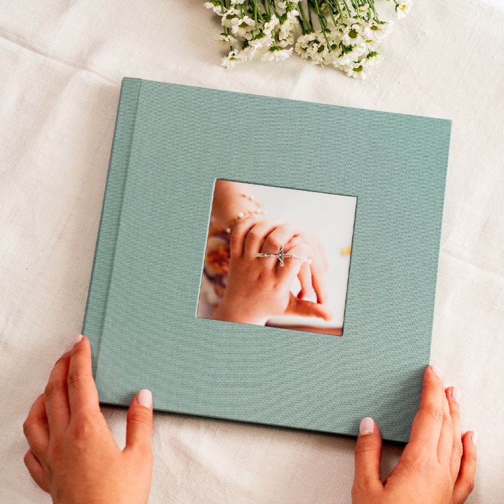 En el modelo Cameo, la portada se convierte en una ventana a la emoción. Tu fotografía favorita queda integrada de forma permanente en el tejido, creando un ligero relieve que la transforma en el corazón del álbum, un detalle que invita a descubrir las memorias que esconde en su interior.