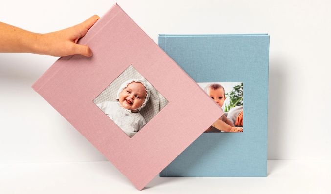 Para un álbum de bautizo, la personalización con stamping es ideal para grabar el nombre y la fecha de ese día tan especial. En un álbum de comunión, la ventana fotográfica del modelo Cameo permite destacar el retrato que mejor representa la celebración. También puedes crear un álbum familiar que reúna varias generaciones o un álbum de viaje que conserve cada aventura vivida.