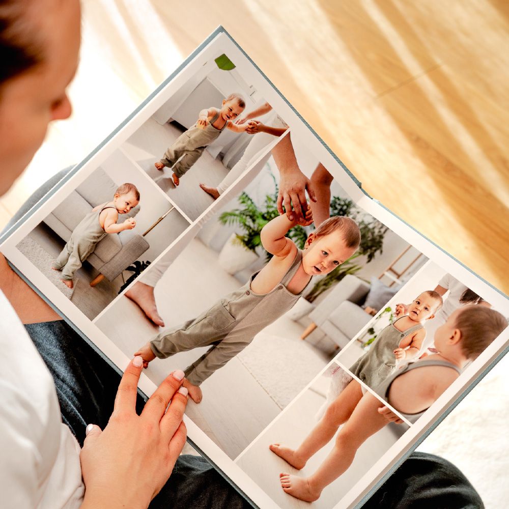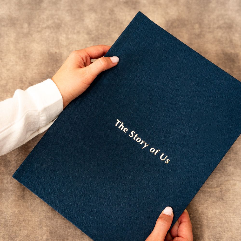 En el modelo Inscription, la portada adquiere una firma propia. La técnica de stamping graba nombres, fechas o pequeñas frases directamente sobre el tejido, creando un relieve sutil y elegante que transforma el álbum en un objeto aún más conectado con la historia que guarda.