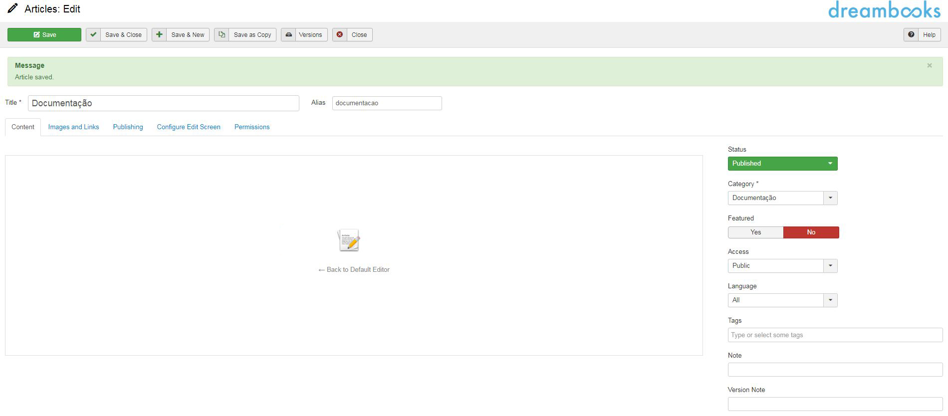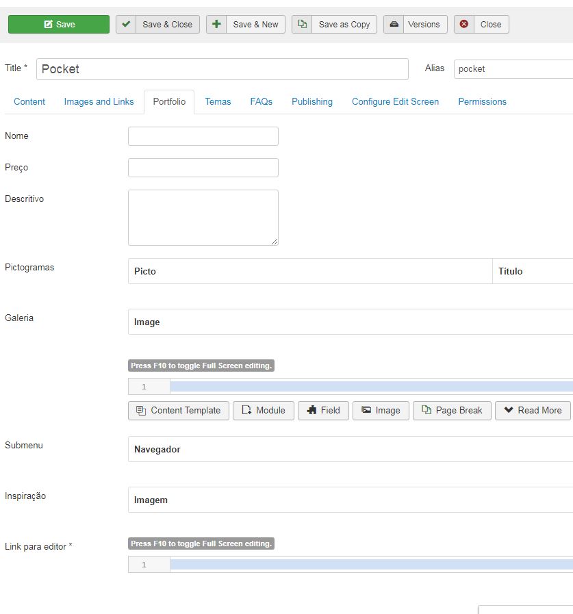 Ao atribuir um idioma a um item, automaticamente disponibilza uma aba Associations