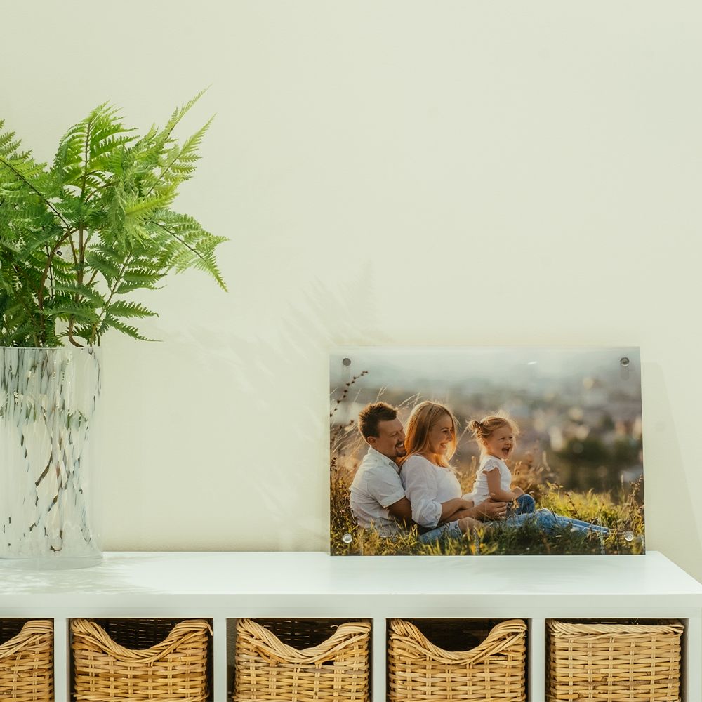 Tus fotos se imprimen en un sistema Fujifilm de inyección de tinta UV. La impresión acrílica proporcionará un color y una profundidad únicos que darán a tus fotos un realce superior. Además de calidad, este tipo de impresión también proporciona una durabilidad superior, especialmente a la exposición al sol e incluso a la humedad. Todos los cuadros tienen las esquinas pulidas a mano, lo que los convierte en una pieza decorativa perfecta.