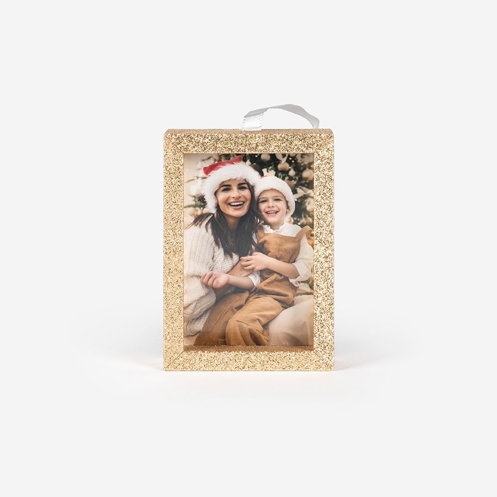 El Marco para Árbol de Navidad está disponible únicamente en el formato 5 x 7,6 cm, que es el tamaño ideal para destacar en el árbol de Navidad. Dreambooks ofrece este marco en cuatro colores distintos, todos con un acabado brillante, para que puedas elegir la mejor opción para tus fotos. En todos los casos, la foto es una oferta de Dreambooks.